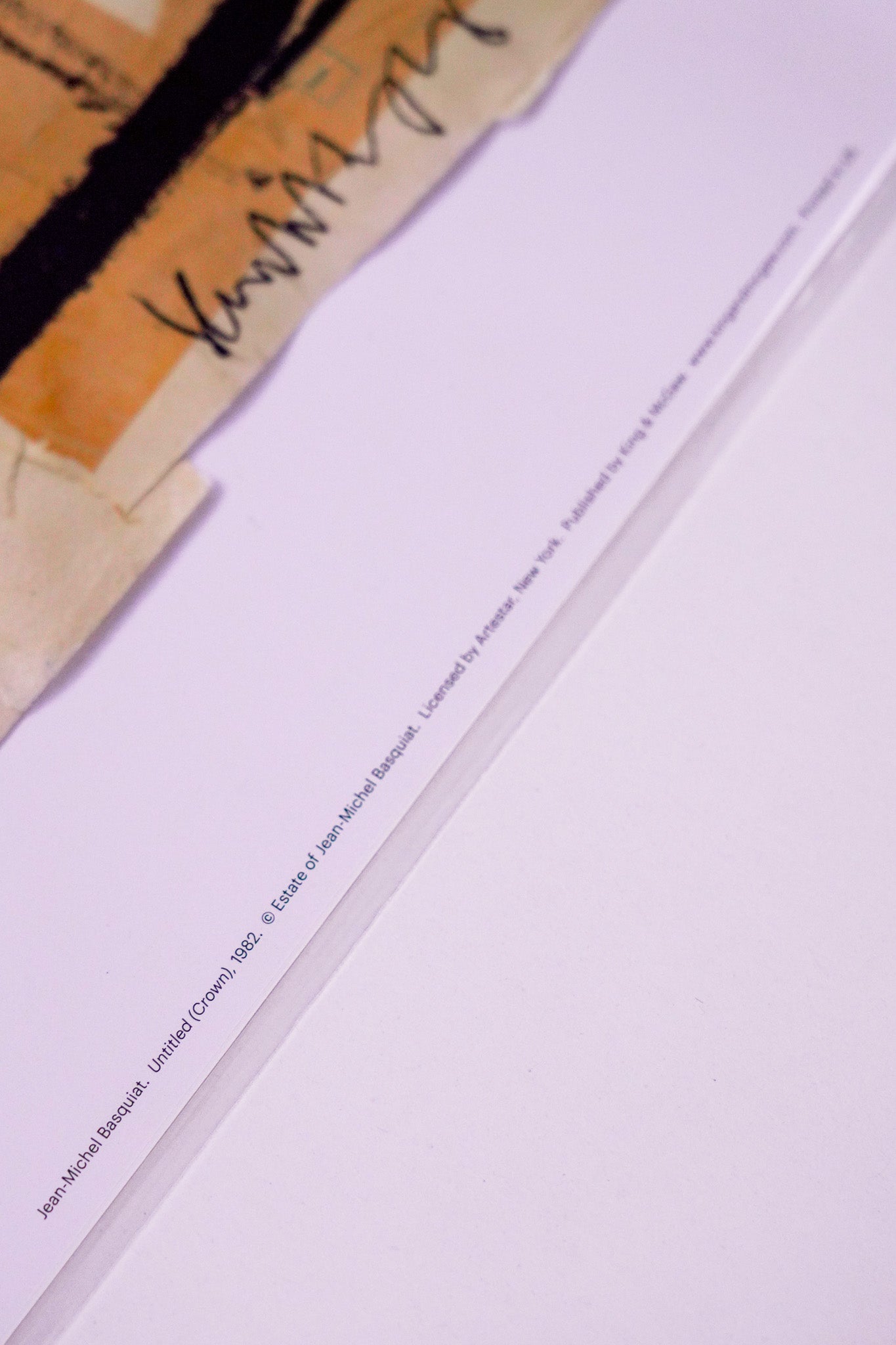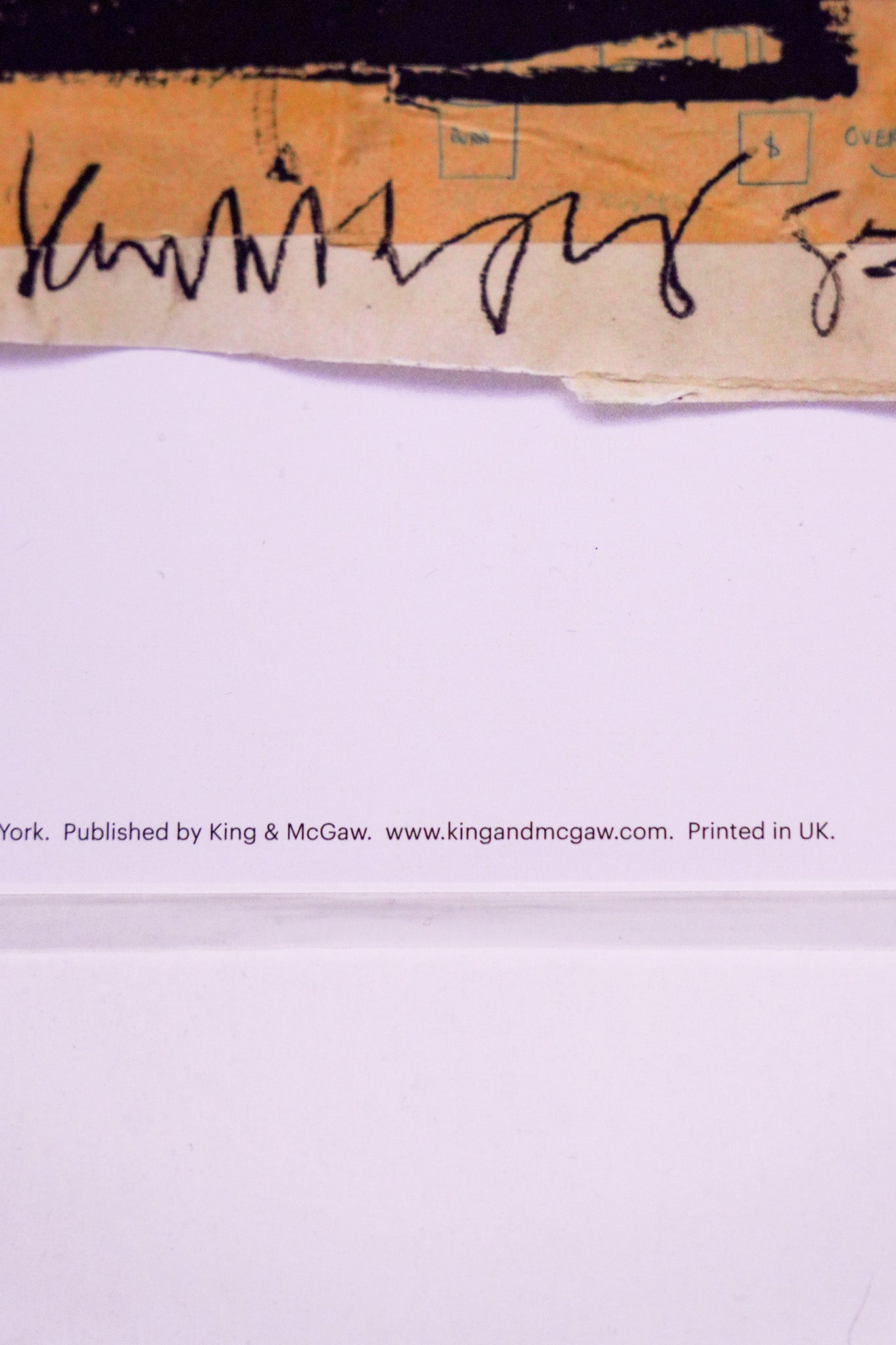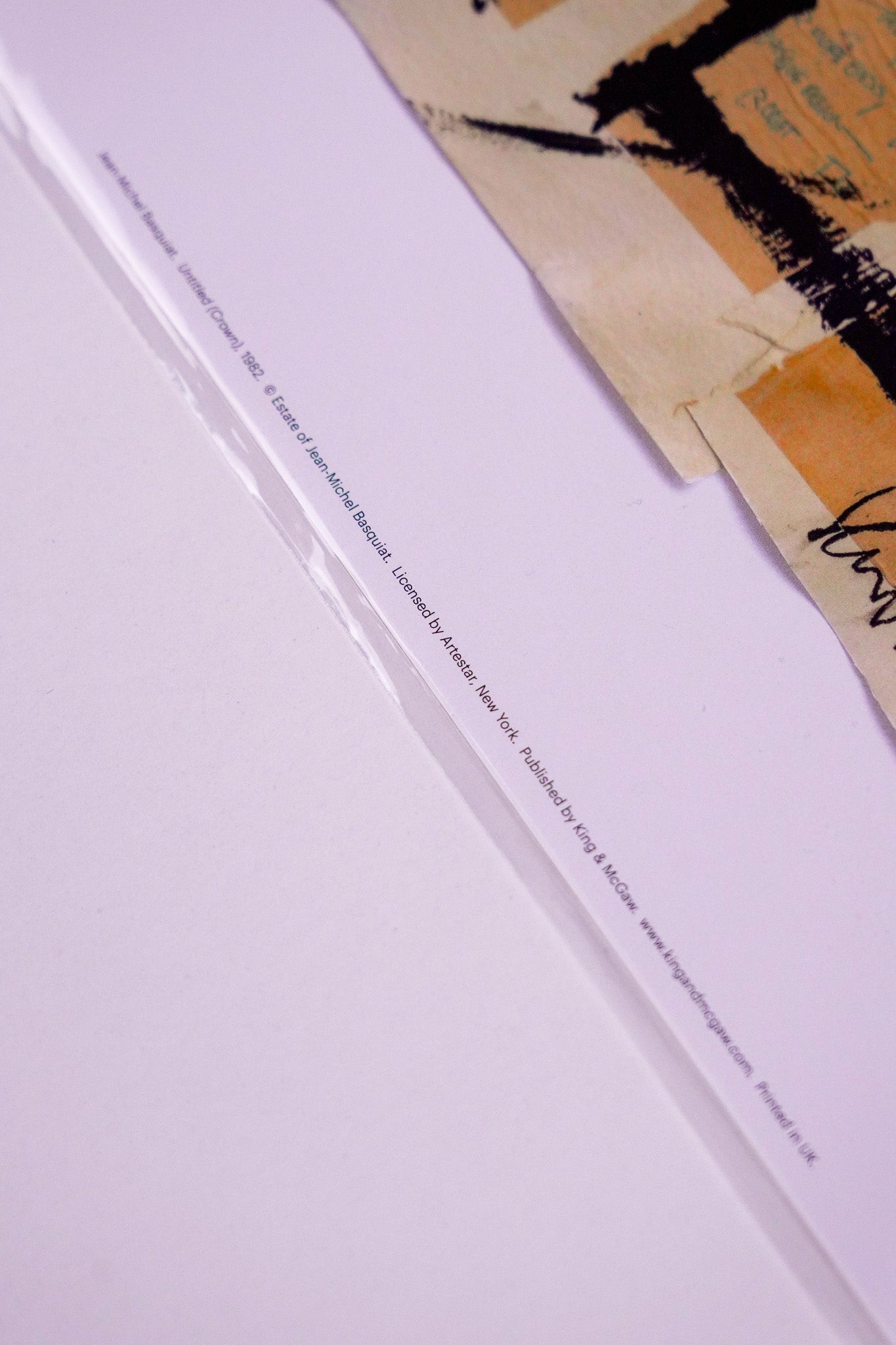 This print features a border containing the artist's name, print title, and publishing details near the bottom edge, adding authenticity to the piece and honoring Basquiat's legacy.