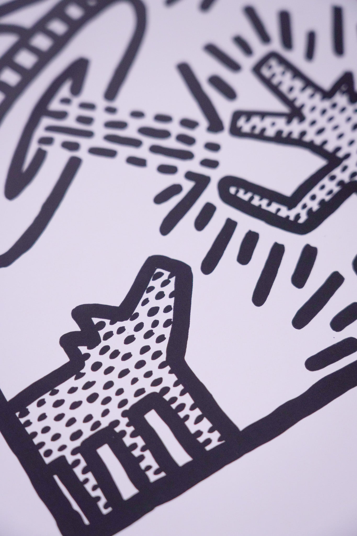 This print features a border with the artist's name, print title, and publishing details near the bottom edge, preserving the authenticity of Haring's vision.